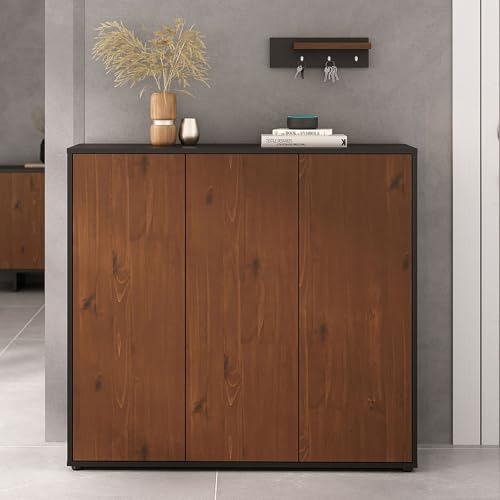 Schuhschrank MIRAN mit 3 Türen, Schwarz/Kastanie farben - Platzsparender Schuhorganizer, Schuhregal Schmal, Schuhaufbewahrung aus Holz, Ideal für Flur und Ankleideraum, Stauraum für ca. 25 Paar Schuhe | 189,95 € | Zum Produkt |